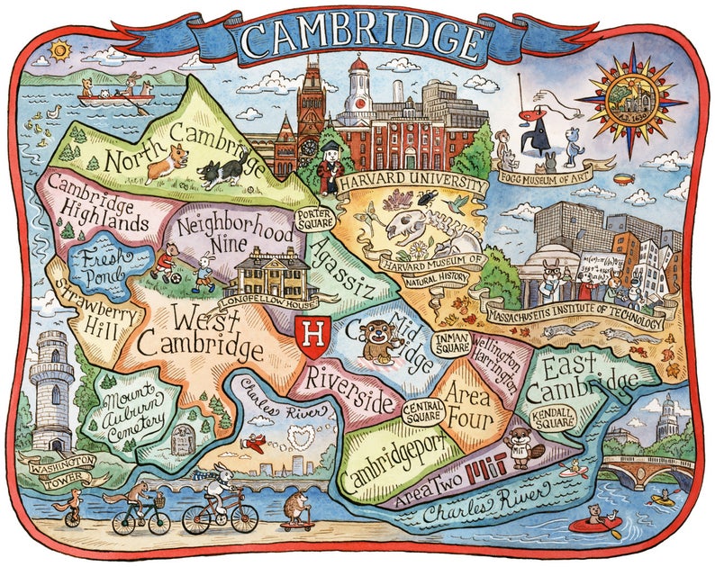 Cambridge Neighborhoods Map Print โ Islay’s Terrace Studio & Shop