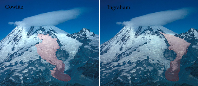 Glaciers at Mount Rainier and locations of viewpoints used for